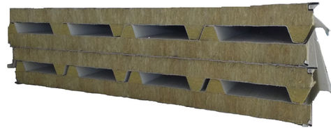 Los paneles para techo de lana mineral están formados por dos capas de acero galvanizado prepintado, con un asilamiento intercalado de lana mineral con fibras de alta densidad (100 kg/m³). Fabricado con 5 crestas que le da mayor capacidad estructural.